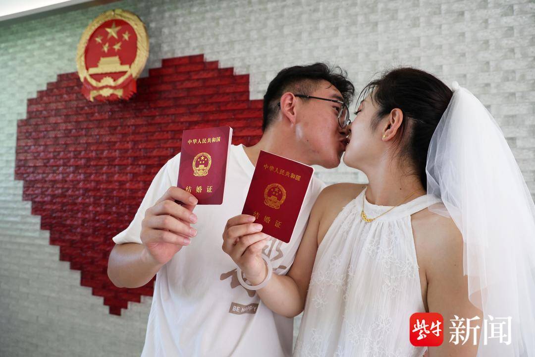 新人在玄武区婚姻登记处领证。新华报业视觉中心记者 宋宁 摄